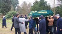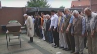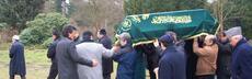 Nach dem Totengebet wird der Sarg zum Grab getragen. Dort wird der Leichname ins Grab auf die rechte Schulter gelegt und mit dem Gesicht in die Gebetsrichtung nach Mekka blickend beigesetzt.